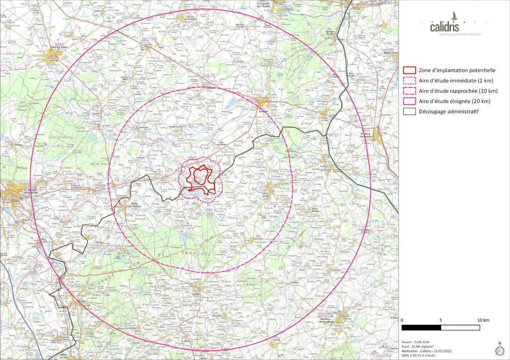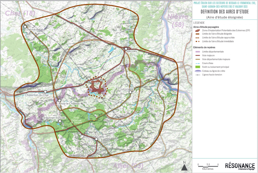 Le projet éolien se situe sur le secteur des communes de Bessais-le-Fromental (18), Saint-Aignan-des-Noyers (18) et Valigny (03) appartenant respectivement aux communautés des communes du Coeur de France, Les Trois Provinces et du Pays de Tronçais. La zone d’étude se trouve à cheval sur les déparetmetns du Cher et de l’Allier, sur les 2 régions du Centre-Val de loire et de l’Auvergne Rhone Alpes.